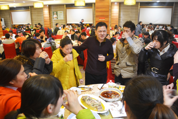 何總在晚宴上為大家舉杯祝福